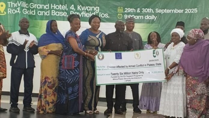 The donation to children is being implemented under the African Peace and Security Architecture Support Programme and will benefit communities across Mangu, Bokkos, Riyom, Barkin Ladi, and Bassa local government areas. It aims to provide food, school materials, and psychosocial support for internally displaced children.